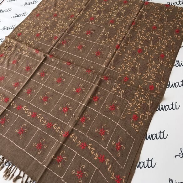 Crafted from premium pure wool, this hand embroidered shawl ensures natural warmth, softness, and durability. The fabric feels smooth and cozy against the skin, making it an ideal winter shawl for chilly evenings and cold-weather outings. The brown wool shawl color adds a classic and earthy touch, complementing both casual and formal attire. Whether you drape it gracefully over your shoulders or wrap it snugly around your neck, this Swati wool shawl instantly enhances your look with elegance and charm.