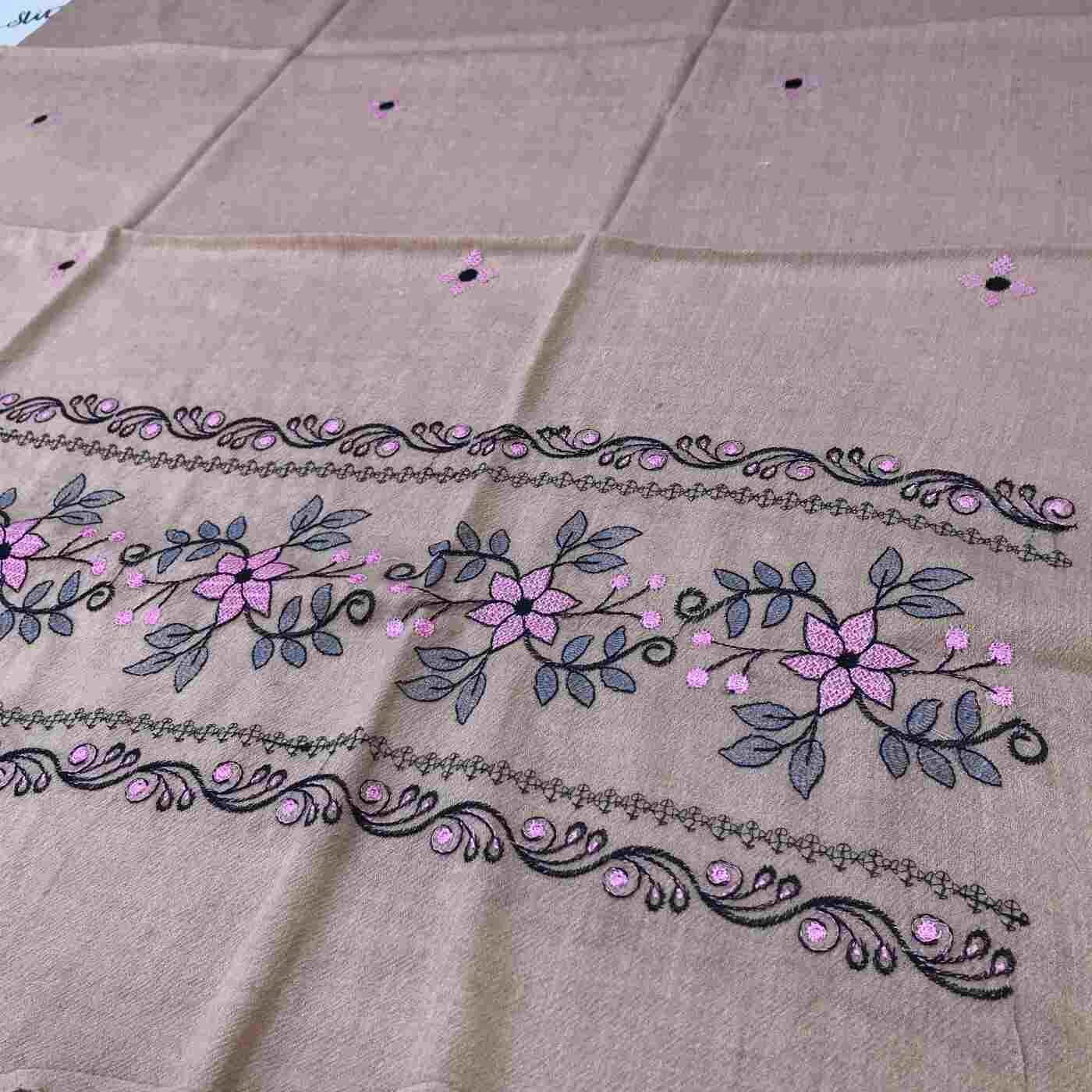 This hand-embroidered pure wool shawl is crafted with care by skilled Swati artisans who specialize in traditional embroidery. The delicate brown hand embroidery adds an exquisite touch of artistry, reflecting cultural heritage and timeless craftsmanship. Every thread tells a story of elegance, patience, and dedication, making each piece unique and valuable. The blend of traditional patterns with a soft, minimal design makes it suitable for both modern and classic fashion.