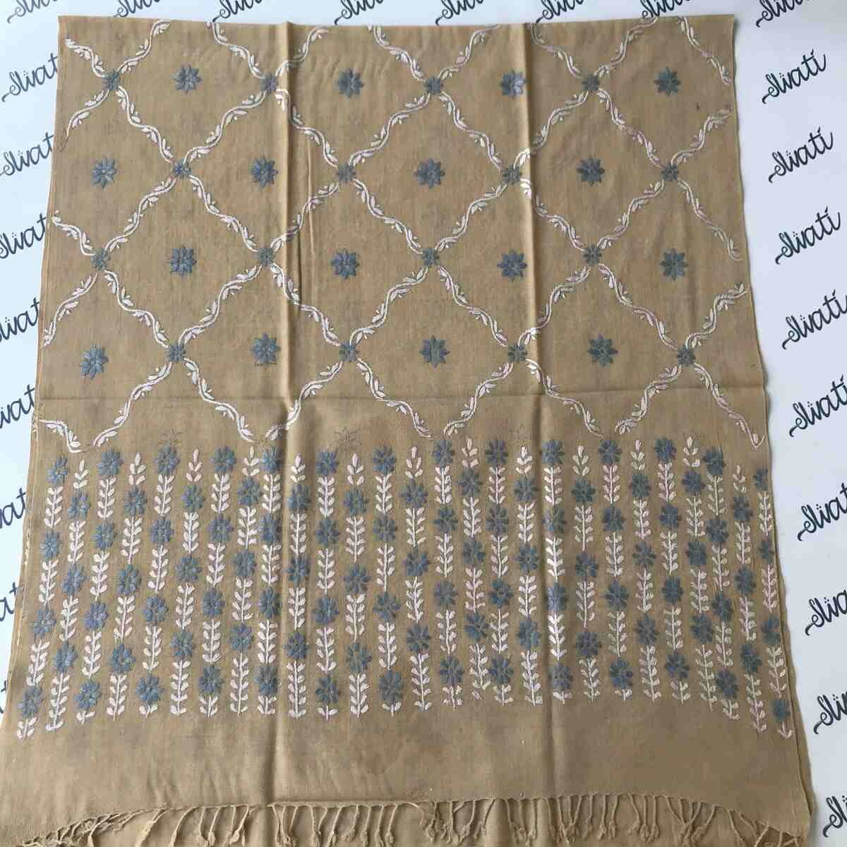 Wear it draped over your shoulders for a chic and casual look, or wrap it snugly around your neck for extra warmth when you’re braving the cold outdoors. This shawl is perfect for layering over coats or pairing with your favorite sweater. The delicate hand embroidery adds an element of refinement, making it suitable for both everyday wear and special occasions.